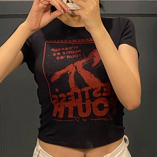 Retro Floral V-Neck Short-Sleeved T-shirt