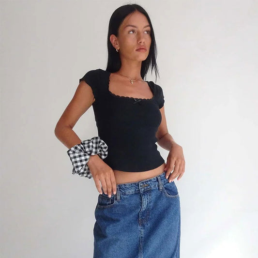 Retro Floral V-Neck Short-Sleeved T-shirt