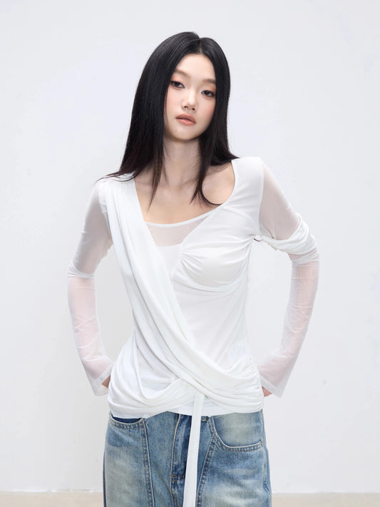 Elena Mesh Wrap Long Sleeve Top
