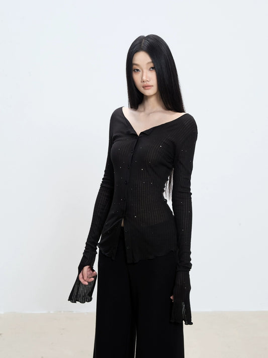 Elara Off-Shoulder Ribbed Button-Up Top