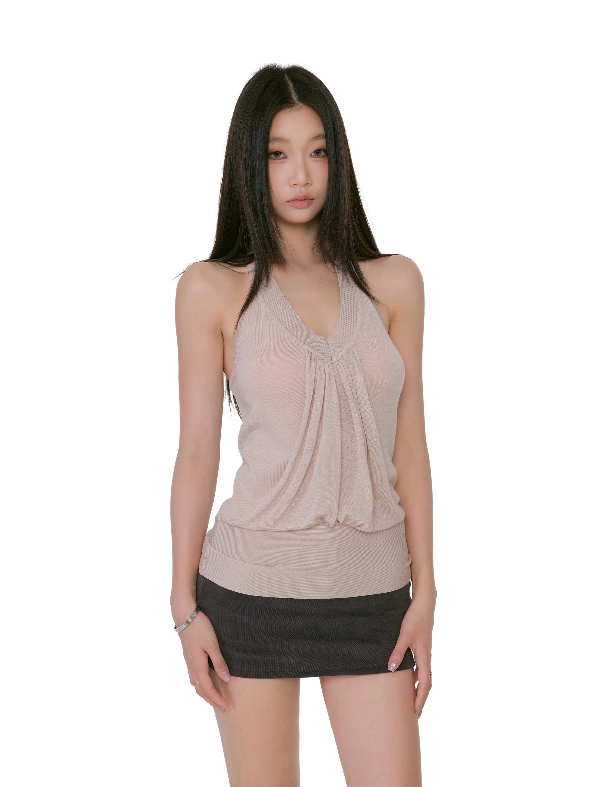 The Adele Drape Front Halter Top captures effortless sophistication with its fluid, softly gathered front. Designed with a plunging neckline and a fitted hem that defines the waist, it drapes beautifully on the body while maintaining a clean, minimalist look. The lightweight knit fabric provides a gentle stretch for comfort and a refined silhouette. Perfect for pairing with skirts or tailored pants for both casual and evening settings.