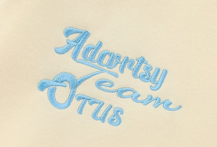 Sporty quarter-zip sweatshirt made from a soft cotton-polyester blend. Features contrast varsity-style sleeve stripes, embroidered front graphics, raglan sleeves for comfort, and a cozy high-neck design. Perfect for everyday casual wear.