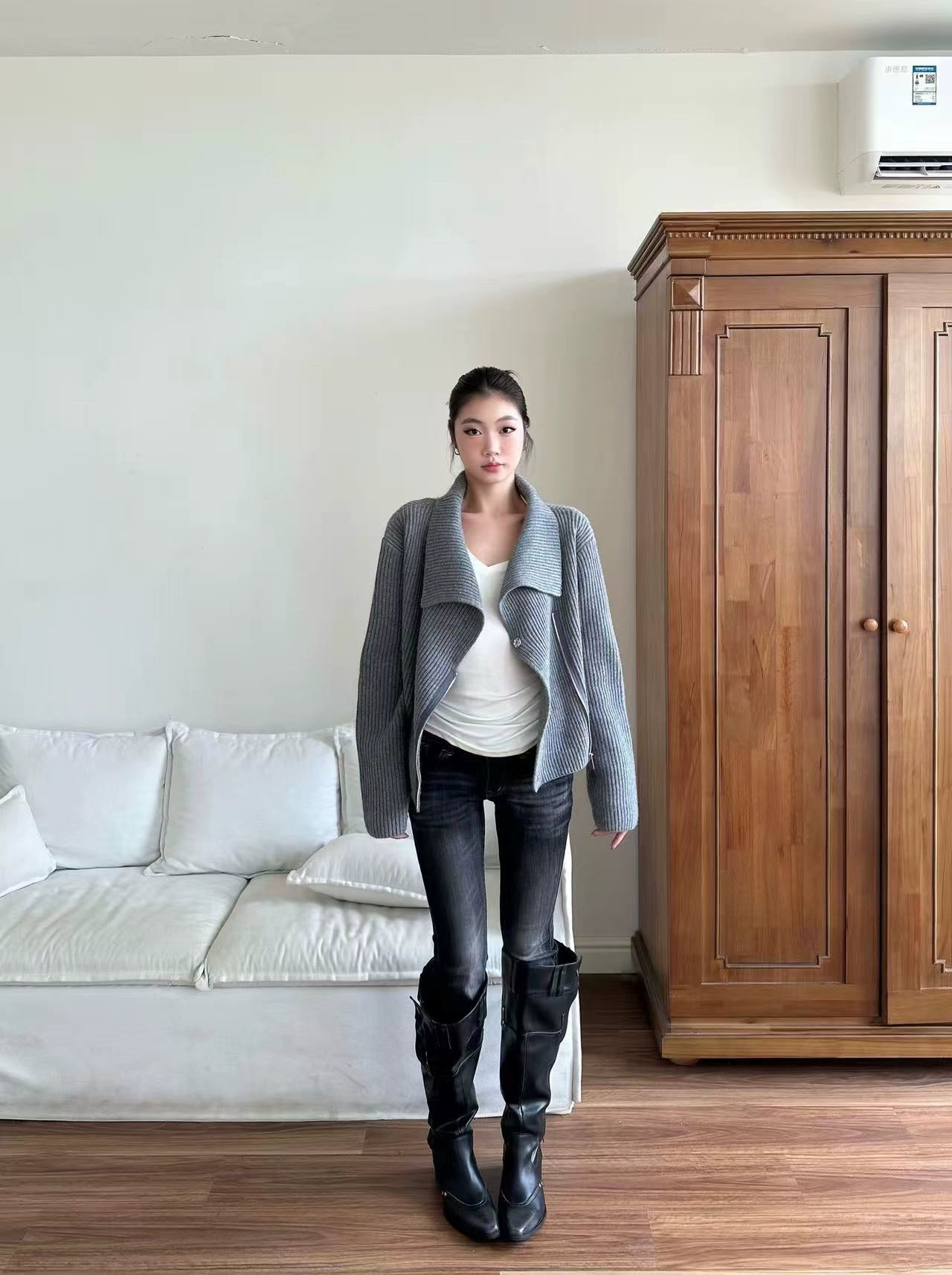 The Arden Zip Front Knit Cardigan combines structure with comfort, giving you a bold yet effortless silhouette. Crafted from a soft ribbed knit with a slight stretch, it features an oversized collar and full-length sleeves that add cozy volume. The front zipper detail brings versatility, allowing you to style it open for a relaxed vibe or closed for a refined finish. Perfect for layering over fitted tops, jeans, or skirts for a modern street feel.