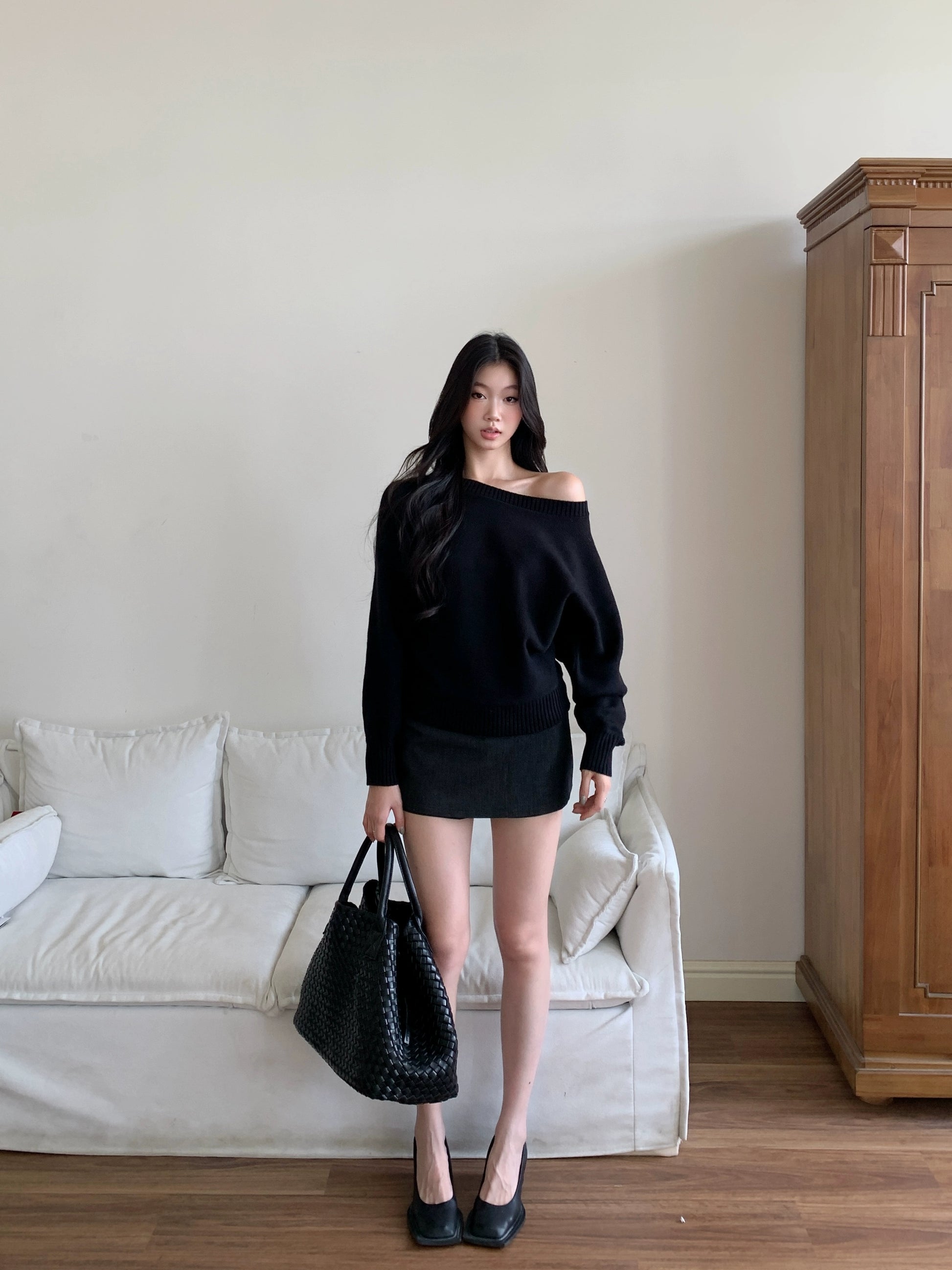 The Ari Off-Shoulder Knit Sweater combines minimal design with a touch of understated sensuality. Its asymmetric neckline softly reveals one shoulder, while the relaxed fit and ribbed edges add balance and structure. Made from a smooth knit with a hint of stretch, this piece feels cozy yet polished. Perfect for dressing up with tailored trousers or styling casually with jeans.