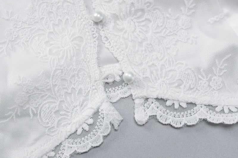 - Delicate scalloped lace trim