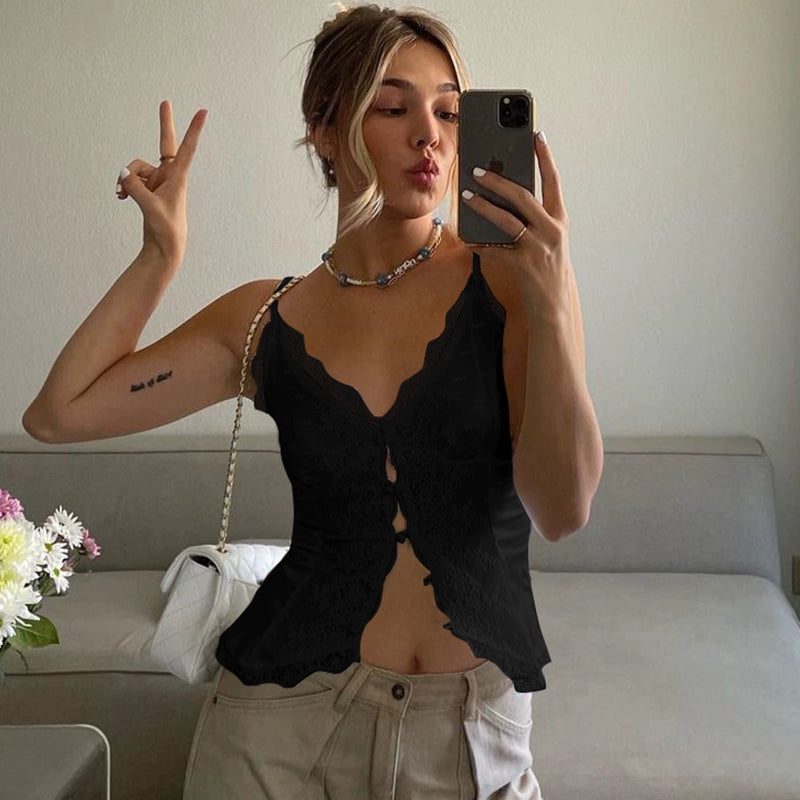 Lace Bloom Front-Tie Camisole