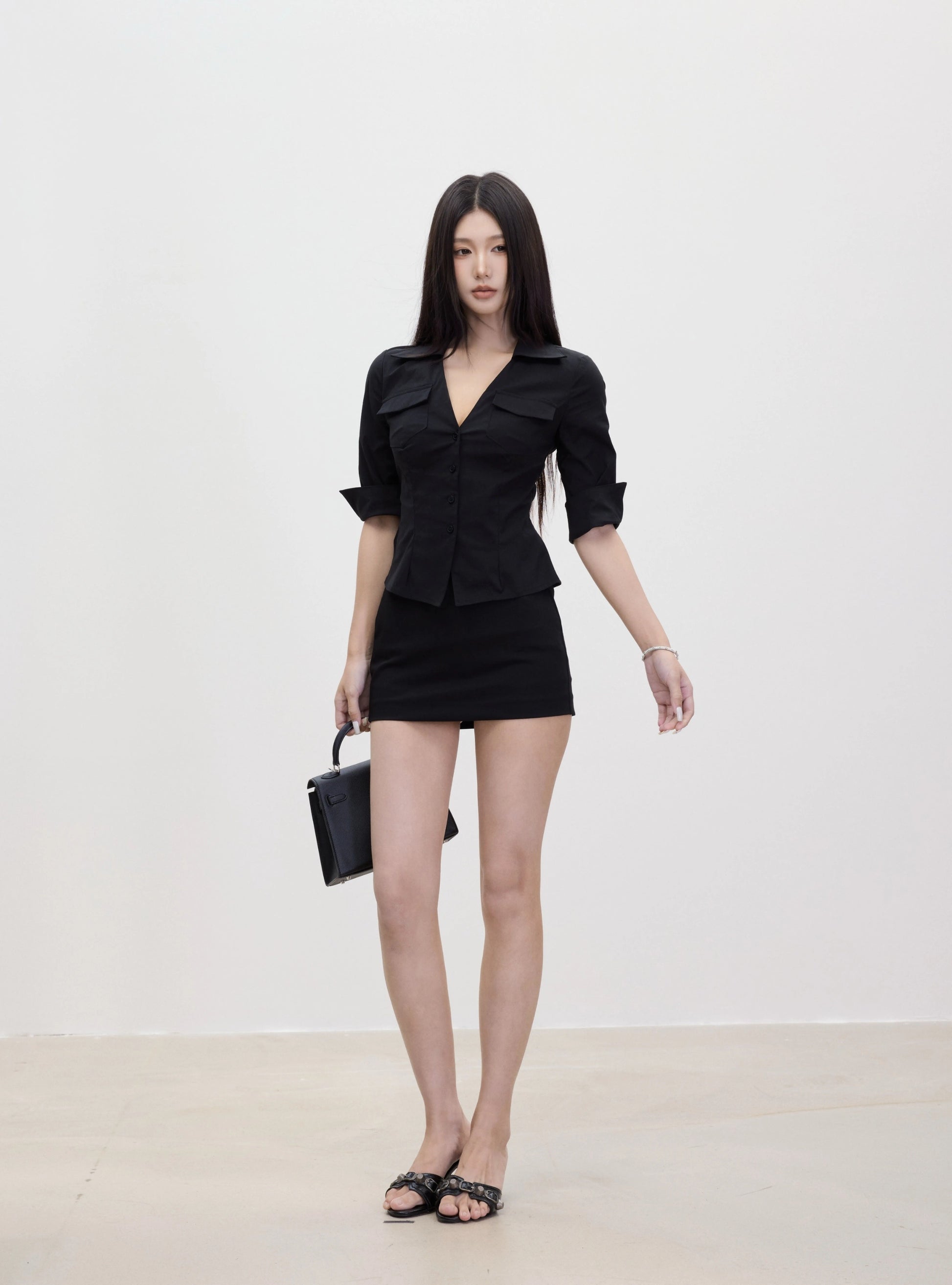 The Lara Tailored Collar Mini Dress blends elegance and sophistication with a modern edge. Crafted from structured fabric, it features a fitted silhouette, button-down front, and sharp lapel collar that create a sleek, confident look. Perfect for evening outings, business-chic events, or a night out, this dress accentuates the waist and elongates the frame effortlessly.