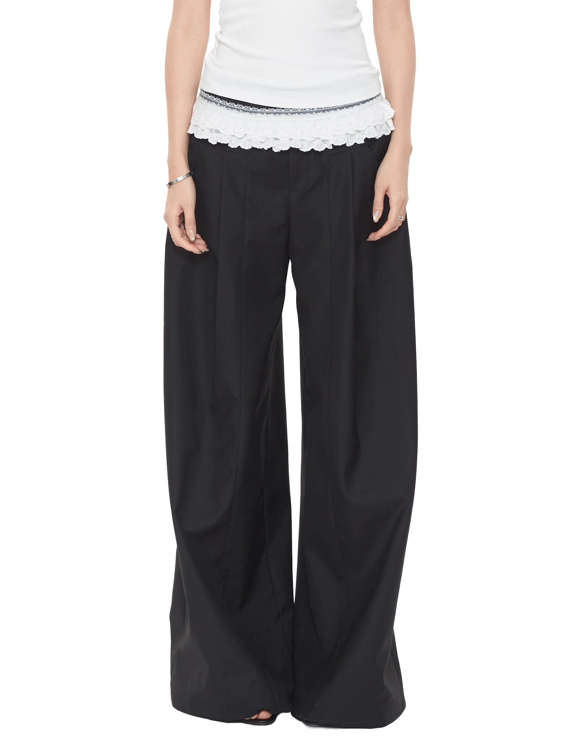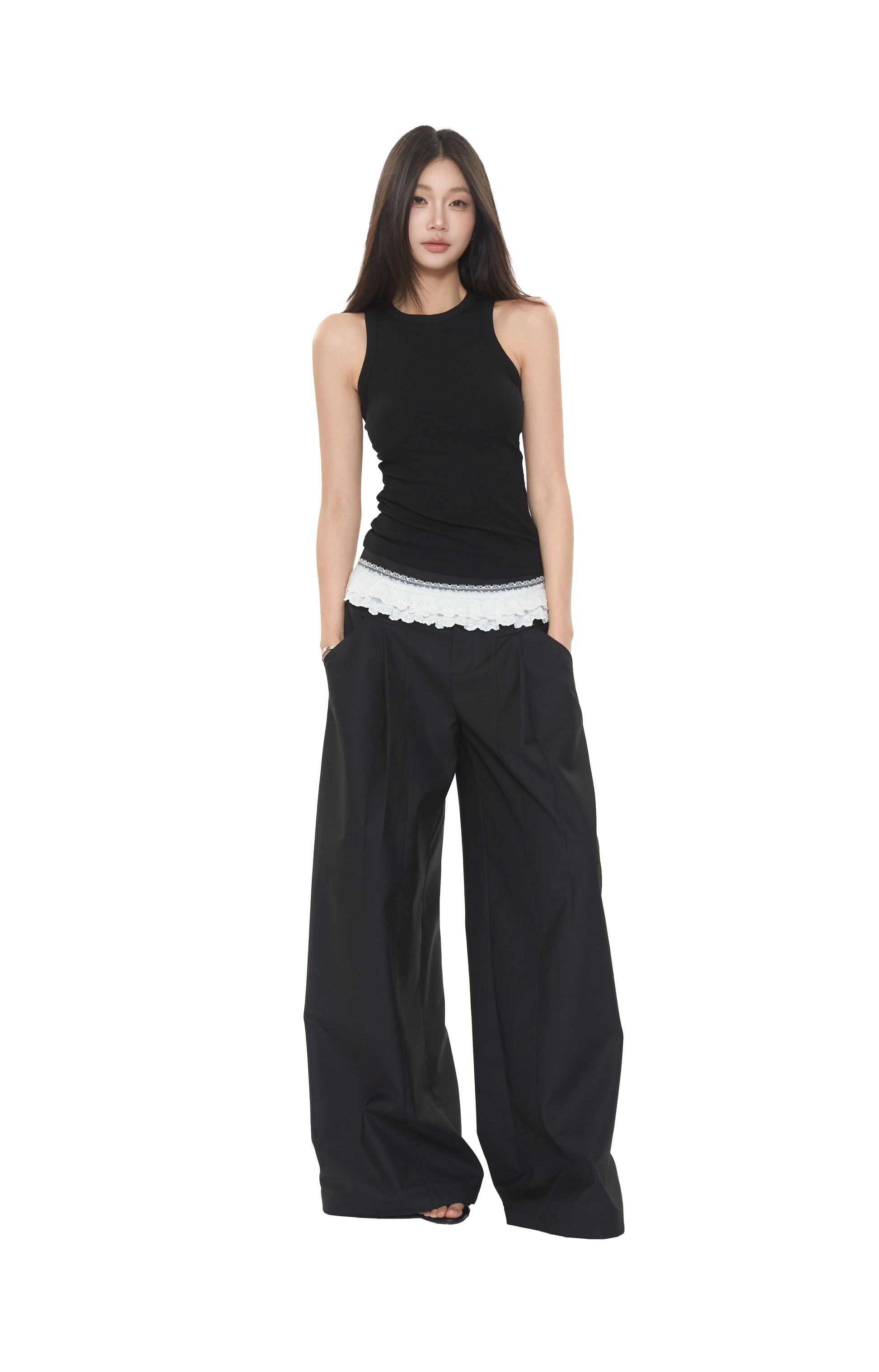 Lior is sculptural ease with directional flow. These high-rise wide-leg pants feature a tailored waistband, soft pleats, and a sweeping silhouette that elongates the frame. The black fabric offers subtle weight and movement, designed for clean layering and minimalist styling. Pair with cropped knits or lace-trim tops for a grounded, modern finish.