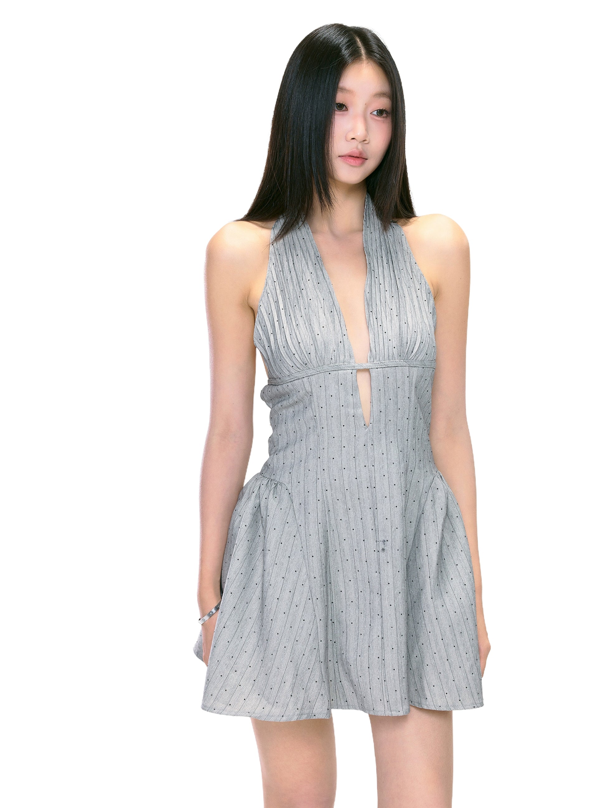 The Lola Pleated Mini Dress brings together elegance and edge with its deep V neckline and softly structured pleats. Designed to cinch the waist and flare out gracefully, it creates a flattering hourglass effect while maintaining a light, effortless flow. The fabric feels smooth yet substantial, holding its shape while staying comfortable. Perfect for night outs, summer parties, or styled casually with sandals for daytime chic.