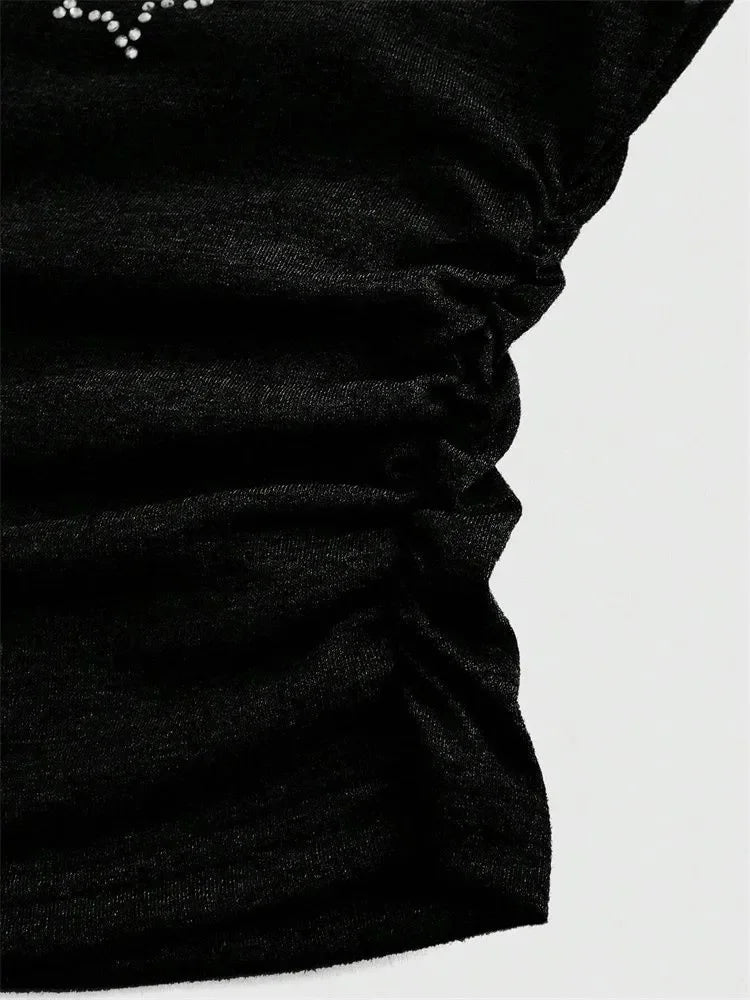 This Rhinestones Star Tube Top features a slightly stretchy broadcloth fabric made from polyester and spandex, ensuring a comfortable and flattering fit.
