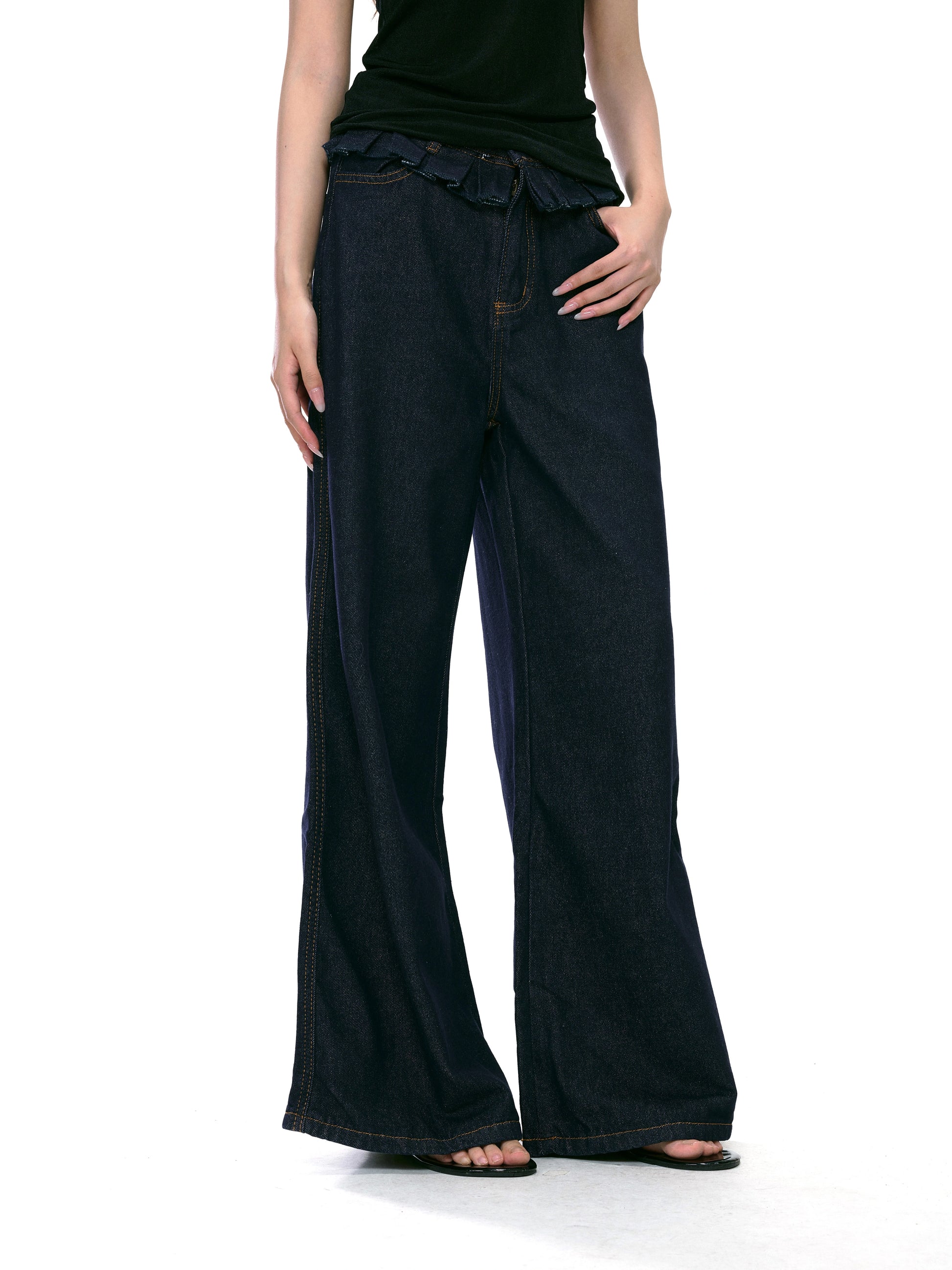 Roux brings structure and ease in equal measure. These high-waisted wide-leg jeans feature a clean silhouette with subtle volume and a soft drape. The dark wash adds depth, while the included belt cinches the waist for a tailored finish. Designed to elongate the frame and balance proportions, Roux pairs effortlessly with fitted tops or cropped knits for a modern, minimalist look.
