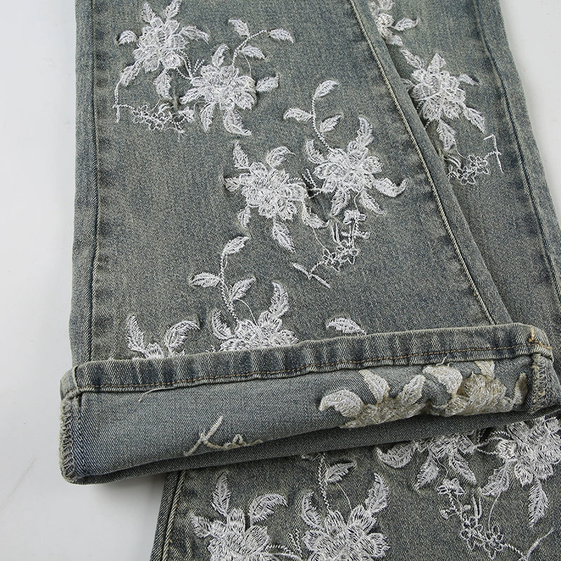 Whisper Bloom Low-Rise Embroidered Flare Jeans
